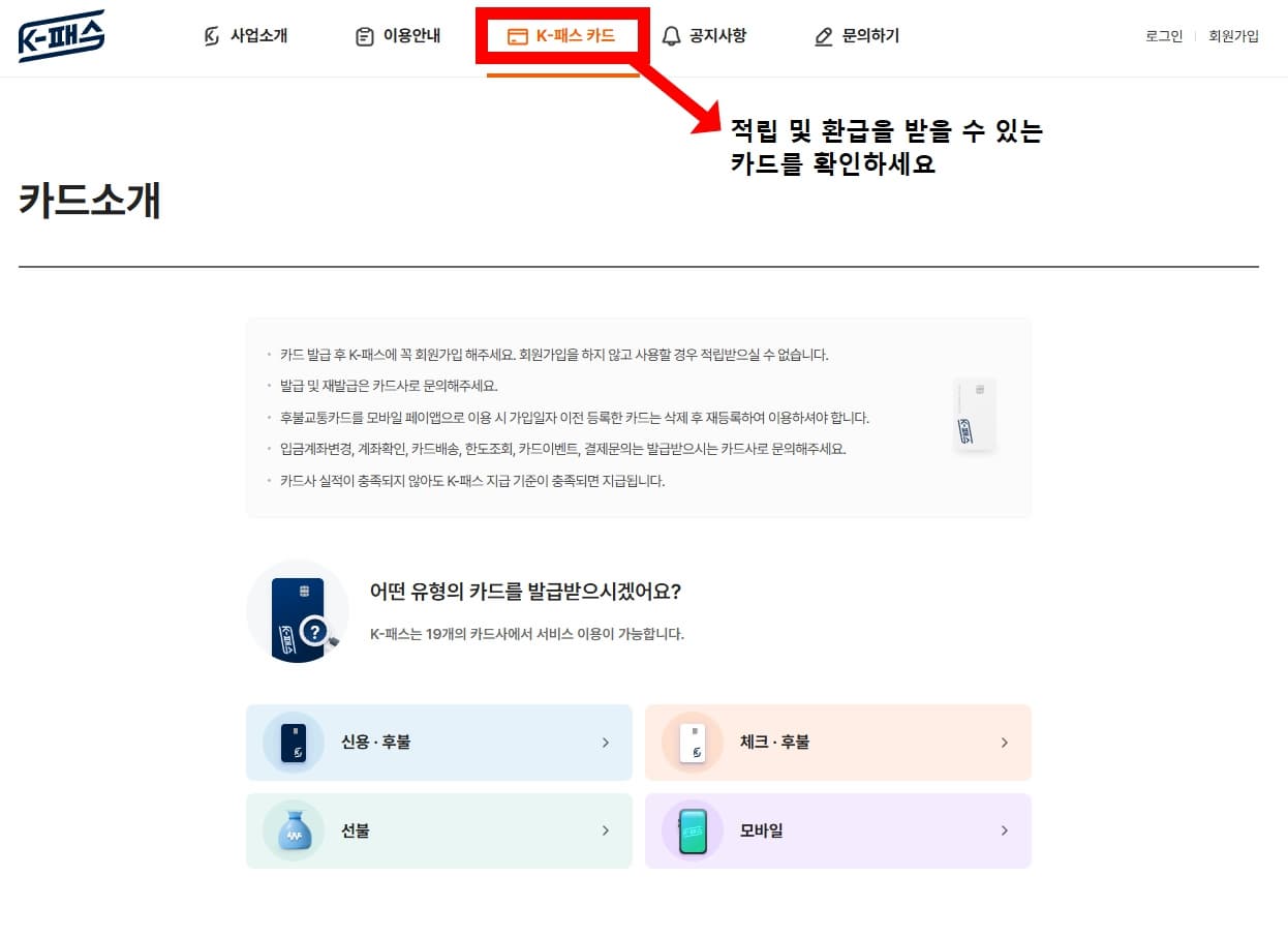 - 카드 발급 → K-패스 회원가입 → 대중교통 이용