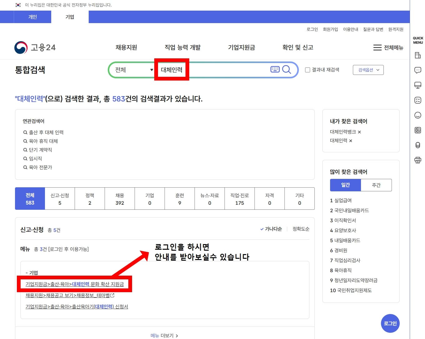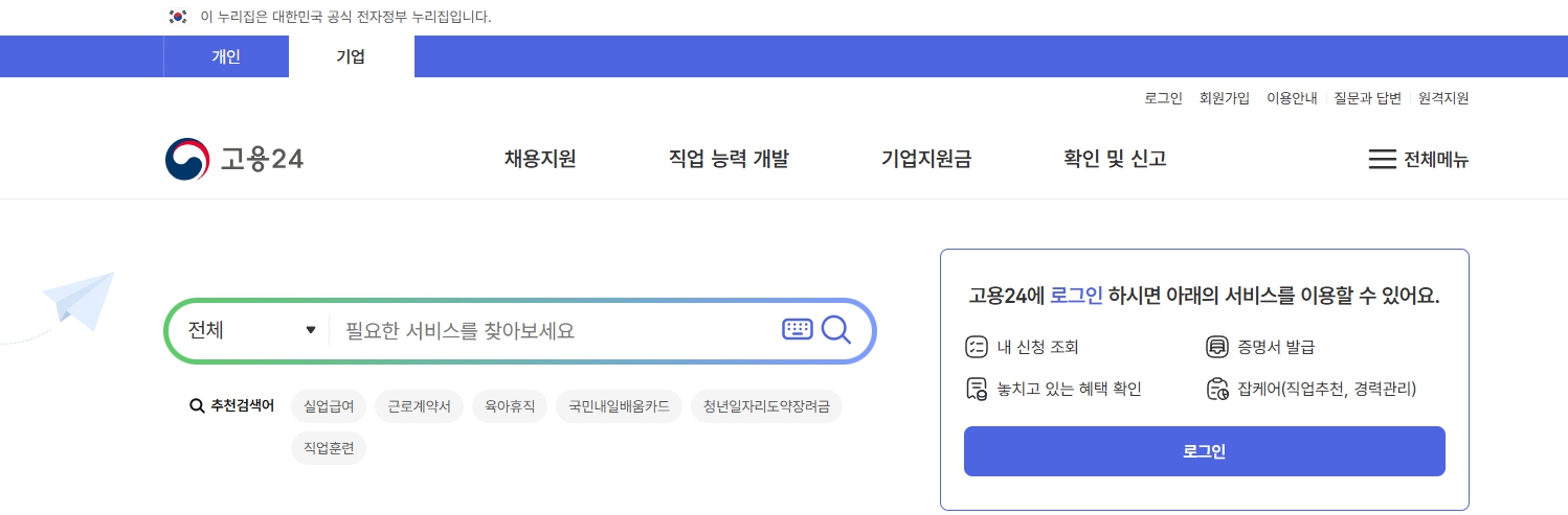가까운 지역 고용센터 방문하세요!고용24_기업